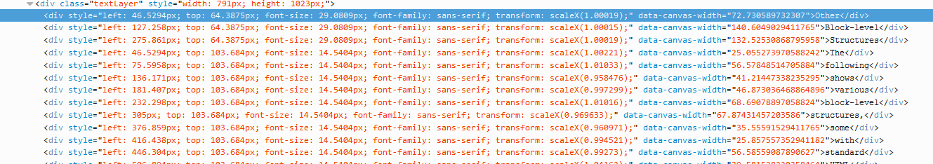 If I open a PDF with Firefox and I inspect the HTML that exists in their