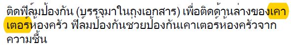 The word เคาเตอร์ was broken into different lines but it should stay together.